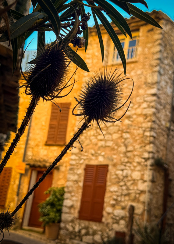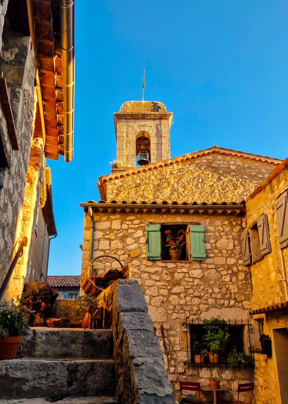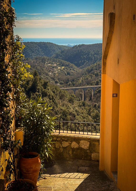 Another village. Technically not on the list of France’s 187 most beautiful, which just proves that even the French sometimes get things wrong. Because this place has it all — views, a Roman road fragment, bell towers, chapels, artists’ studios, tiny galleries, blooming balconies, and streets made for slow walking and sighing contentedly.
